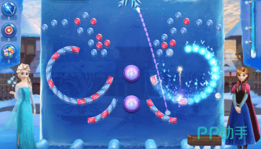 阿伦黛尔城堡、北山冰宫这些场景都有复刻,搭配原版配音跟冰雪主题BGM,代入感做得不错。关卡目标不只是得分,还有清除雪块、引导道具掉落、收集指定冰晶这些任务,避免了重复感。艾莎的冰雪粉碎能消除全屏同色冰晶,安娜的火焰消除可以烧毁整排障碍,根据关卡需求切换角色搭配技能比较关键。
