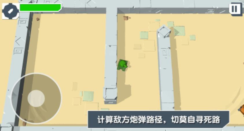 极简火柴人美术风格让坦克对战变得轻松有趣,线条干净色彩明快,坦克造型小巧可爱。爆炸和炮击特效虽然简洁但冲击力不差,战场涵盖城市、沙漠、雪地、废墟这些地形,掩体分布错落适配不同战术。双摇杆加射击键的操作没有复杂按键,移动转向开火一气呵成。AI敌人分初级、中级、高级三个难度,适配不同水平玩家。