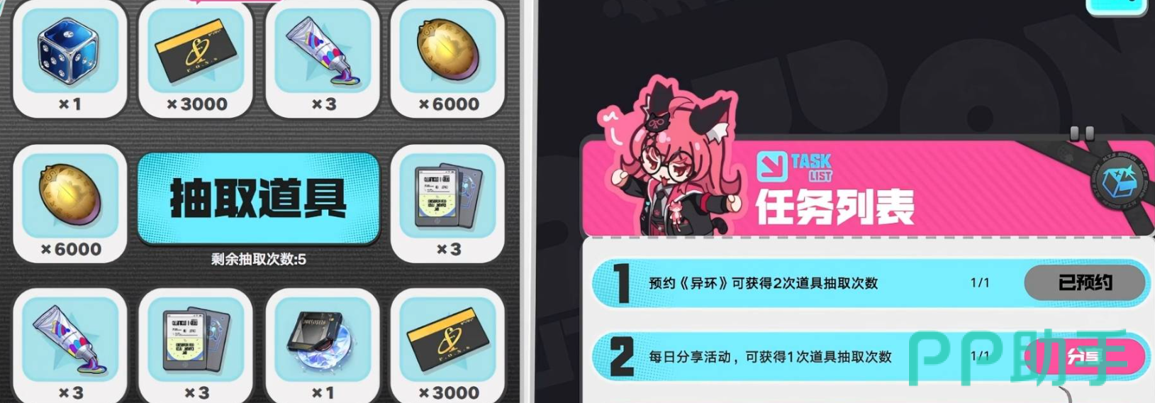 预抽卡流程门槛较低:玩家只需完成指定的轻量级互动任务(如分享、关注、试玩等),即可累积免费抽卡次数。当次数达到上限后,可完整抽取预设奖池内全部道具,并从中自主挑选6项带入公测环境——这意味着策略性选择比单纯运气更重要。