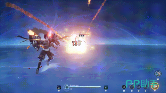 其普攻具备弹药切换机制:装配“速射弹”时,每次射击可累积热度值与兴奋值,并对单体造成连续伤害;切换至“榴弹”模式后,射击需消耗热度值,但可获取更高效率的兴奋值,并触发范围伤害。若在榴弹飞行途中精准二次开火,将额外释放一枚追踪飞弹,形成复合打击。