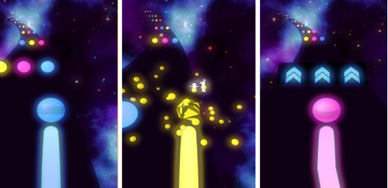 控制球球在五彩缤纷的环境当中自行探索,其核心玩法,就是拥有简单的操作,也有丰富的音乐类型,为玩家带来沉浸式音乐互动体验,跟随节拍,通过点击或者滑动长按屏幕的方式来完成球球跳跃躲避障碍的同时,还能够完成挑战。其中加入了很多海量歌曲,所有玩家都能够选择适合你的流行或者经典老歌,多种音乐风格可任意挑选。