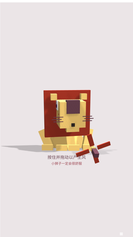 一款轻量级物理互动小游戏。玩家通过滑动屏幕调节虚拟吹风机的风向与风速,控制气流推动画面中的卡通狮子模型。其四肢摆动幅度、身体倾斜角度及毛发飘动状态均随风力参数实时变化,操作反馈直观,节奏舒缓,适合碎片化时间放松使用。