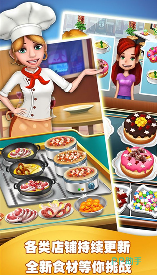 主打精致梦幻的视觉呈现,餐厅空间融合水晶吊灯、复古桌椅与主题墙饰,营造出温馨高雅的用餐氛围。玩家化身专业料理师,围绕甜点工坊展开经营,可调配多种香料与基底原料,制作马卡龙、芝士蛋糕、法式面包等高颜值西点。每道成品均具备丰富色彩层次与逼真质感,满足不同客群对视觉与味觉的双重期待。