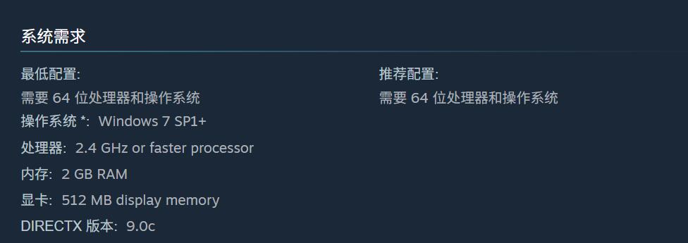 最低运行配置面向主流中低端设备设计,确保基础体验可达。操作系统需为64位Windows 7或更高版本;处理器建议采用Intel Core i3-4160或同性能级别的AMD产品,可满足场景加载与角色交互的基本运算需求;内存方面,2GB RAM为理论下限,但若后台程序较多,易引发资源争抢导致加载延迟,因此推荐使用4GB RAM以提升稳定性;显卡方面,NVIDIA GeForce GTX 460 或 AMD Radeon HD 6850 及以上型号即可保障模型渲染清晰、光影过渡自然,避免出现贴图错位或明暗断层现象。