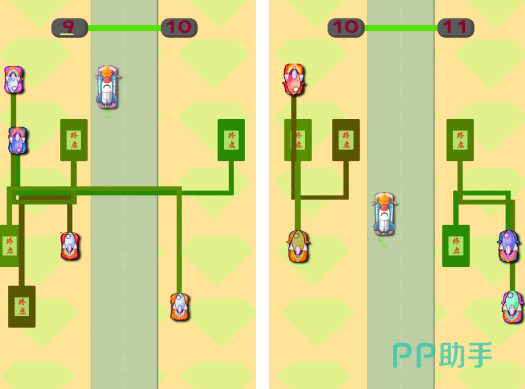 竖屏单手操作的视觉预判类游戏。玩家需在火箭升空路径中快速识别同色单位,通过划线方式为各色火箭规划独立安全轨迹,确保其抵达终点前不发生碰撞。所有火箭均以卡通风格呈现,配色鲜明、动态流畅。游戏不设时间压力,专注考察瞬时信息提取与多线程路径规划能力,是提升专注力与反应协调性的高效训练载体。