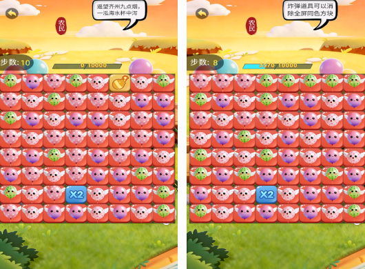 基于物理弹跳机制的泡泡消除游戏。每个关卡设定明确分数目标,玩家需点击屏幕触发泡泡弹射,利用反弹角度与连锁反应达成指定颜色组合消除。炸弹道具可一键引爆同色区域,大幅降低操作容错率。游戏强调预判精度与道具时机把控,在轻松画风下隐藏着严谨的物理计算逻辑。