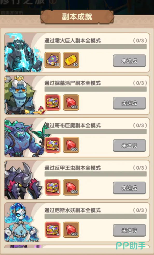 但是高风险也伴随着高回报,修行之路的奖励机制十分有吸引力。挑战结束之后,殿下产生出来的随机宝箱、混沌之石、回响之环等宝物就会出现在这里。这些道具在后面的“魔法卷轴”养成系统里起着非常关键的作用,直接决定你的战力上限。尤其是结晶宝箱可以给魔法卷轴提供很强的属性加成。除此之外,每一个修行副本只有第一次打通简单、困难、地狱全部模式,就会获得专属成就和奖励,海有高阶结晶随机宝箱和钻石等奖励。