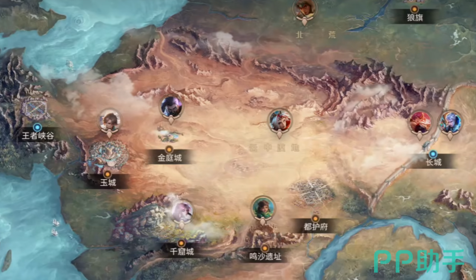 中部区域构成剧情推进与玩法拓展的核心腹地,由河洛、北荒、云中末地三部分组成。河洛复刻盛唐长安气象,建筑恢弘、市井繁盛,是主线剧情深度演绎的关键舞台;北荒呈现极寒冰原与荒漠交错的地貌特征,氛围肃穆冷峻;云中末地则依托险要山势构筑边塞军事要塞,地形高低错落、易守难攻。此区域汇聚姜子牙、东皇太一、项羽等高权重角色,既是多流派战斗机制集中展示区,也是理解王者世界历史演进脉络的重要窗口。