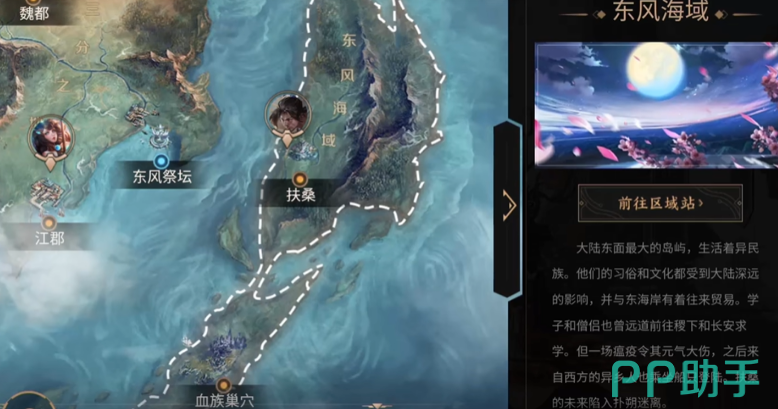 西部区域展现出显著的异质性风格,日落海位于地图左上方位,整体采用西方奇幻美术语言,海洋城邦与日落圣殿构成标志性场景,杨戬、鬼谷子等角色频繁活跃于该区域。此外,龙脊骨、沧浪楼船、天柱墟等地形单元各具辨识度,地貌复杂度与叙事密度同步提升。其中,高难度挑战区设有明确组队门槛——需至少两名玩家协同进入,方可激活隐藏剧情节点并获取S级装备兑换材料等稀缺资源。