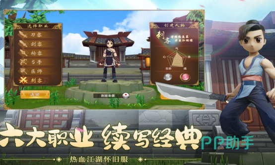 本作是一款武侠题材MMORPG,采用Q版卡通渲染风格,在操作逻辑与副本结构上高度复刻PC端经典设计。职业体系涵盖刀客、剑客等传统门派,各具差异化定位;转职系统覆盖多阶进阶路径,支持自创武功与双线成长模式,强化角色个性化养成维度。