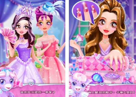 游戏设定于一所专为公主设立的魔法学院,内容涵盖仪态训练、社交礼仪、形象管理三大主线。玩家需完成面部SPA护理、指甲彩绘、香水调制、礼服熨烫等多样化任务,逐步提升角色魅力值与学院评级。衣橱系统收录超200件服饰单品,支持按季节、场合、色彩系智能筛选;妆容模块提供腮红、眼影、唇彩等独立调节项,兼顾细节表现力与操作便捷性。