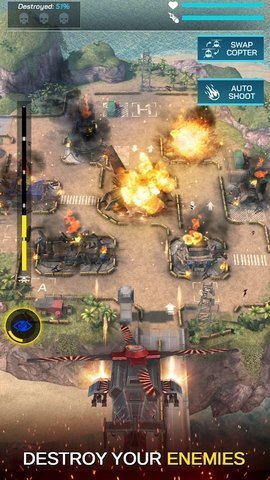 突出真实飞行物理反馈,支持俯冲、急转、悬停、侧滑等高阶飞行动作。搭载机炮、火箭巢、红外制导导弹等多类武器,依据目标类型智能切换打击模式。单人战役含侦查渗透、物资投送、敌后斩首等多样化任务线,通关后可积累金币、零件与蓝图资源,用于直升机引擎、装甲、航电与挂载系统的逐级强化。