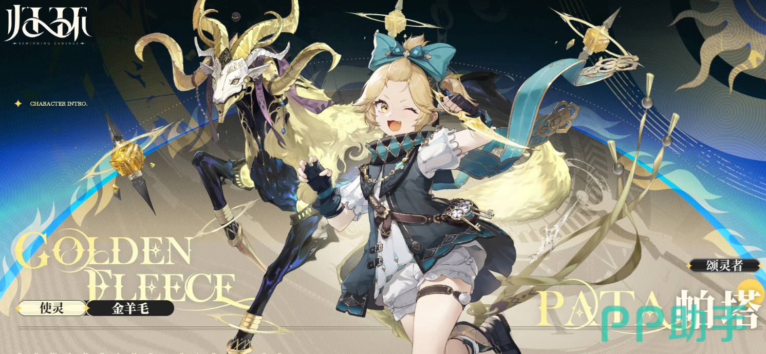 属性:岩。猎宝团现任团长,常年活跃于遗迹与秘境之间。虽以寻宝为业,但真正驱动她的并非财富本身,而是对未知线索的执着追寻。契约灵体为金羊毛——由人类集体渴望所凝结而成的具象化灵体,其纯金角饰为猎宝团标志性信物;现由帕塔亲自培养为副团长,亦为团队第二位正式成员。