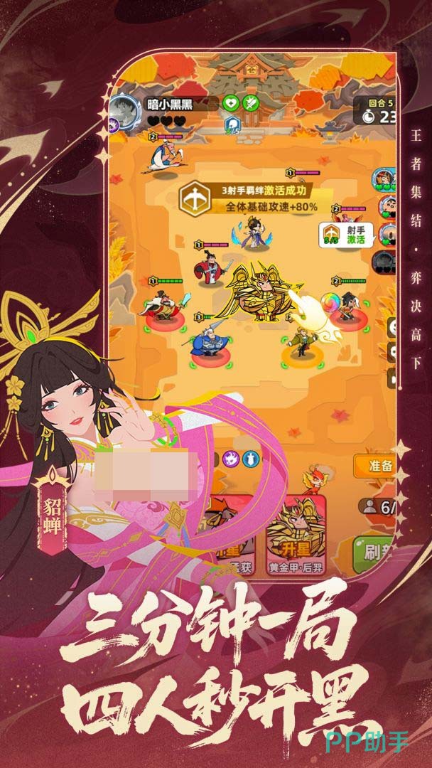 《王者之弈》的核心策略维度围绕“角色成长—职业协同—站位博弈”三层体系展开。玩家需通过合理搭配不同职业单位,激活对应羁绊效果,并结合地形与敌方阵型动态调整布阵逻辑,从而实现战力最大化。该机制对新手友好,同时保留深度运营空间。