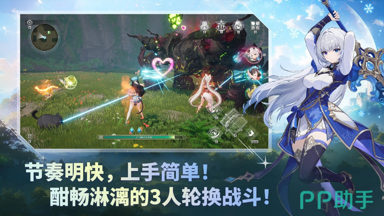 战斗采用实时三人轮换操作模式,强调节奏把控与时机判断。玩家可在攻防转换间无缝切换角色,配合精准QTE指令释放必杀技,触发多段浮空、元素连锁与跨角色合体技,整体演出兼具电影级镜头语言与强反馈打击感。