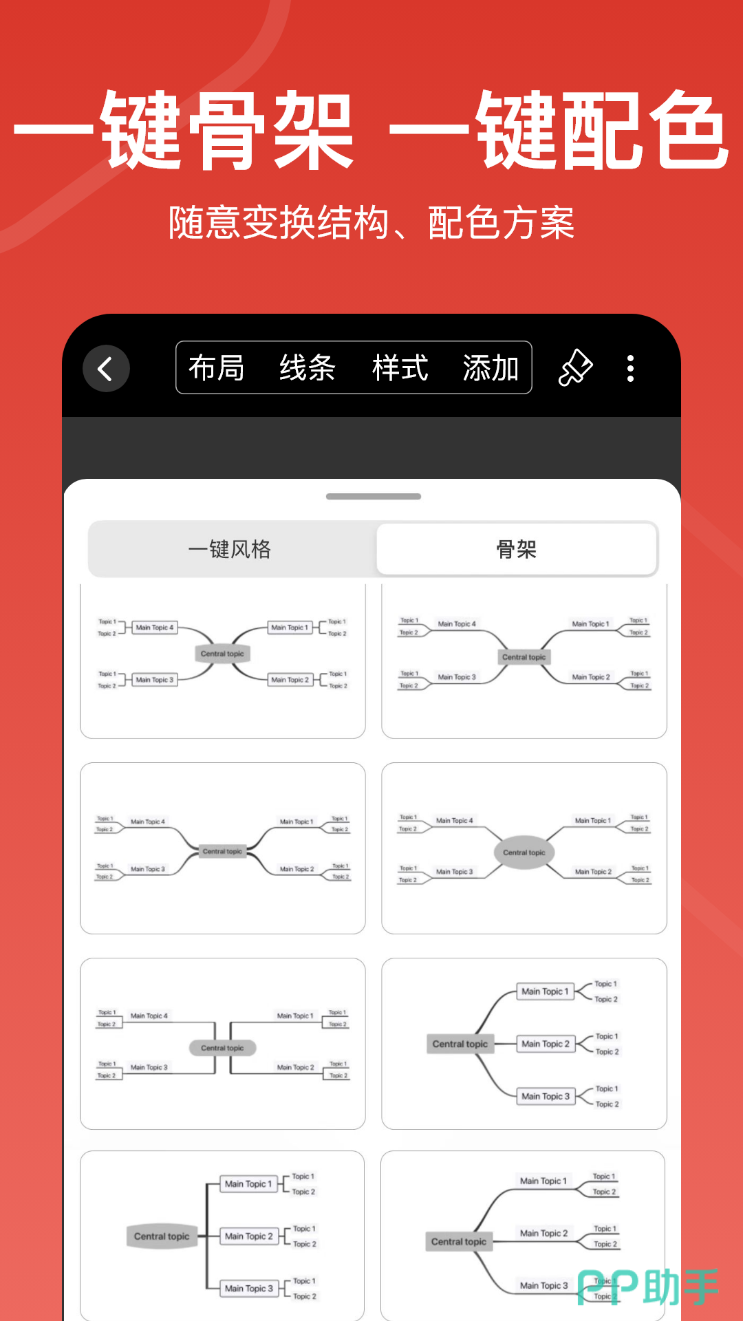 启动后直接进入编辑状态,没有复杂的功能入口,常见的树状图、鱼骨图、气泡图都是有的,平时梳理琐事、制定简单计划足够用。线条和配色都很清爽,不会显得杂乱,还能自定义节点颜色和线条样式哦。