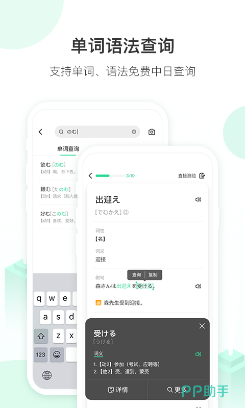 最大的特点就是简单好上手,功能上是一点不为难人,打开就能直接开始记。里面搭配了很多生活里常见的例句,就像平时看短视频学日常表达一样,能清楚知道这些词句在实际场景里怎么用,不用死记硬背。而且它会根据你记的情况,自动调整复习时间,就像有个专属小助手,不用自己特意记着什么时候复习,不知不觉就能记牢。