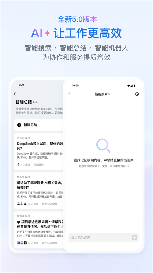 企业微信是腾讯打造的轻量化企业办公协同平台,主打内外连接与高效沟通。它支持与个人微信无缝互通,员工可直接添加客户微信、运营客户社群,还能发布客户朋友圈,完成营销与服务闭环。内部提供即时通讯、视频会议、在线文档、微盘存储、日程管理等基础功能,界面沿用微信操作逻辑,员工上手极快。应用市场可对接CRM、进销存等第三方工具,满足企业拓展需求。适合零售、电商、服务业等需要高频对接客户的团队,以及追求轻量化办公的中小微企业。