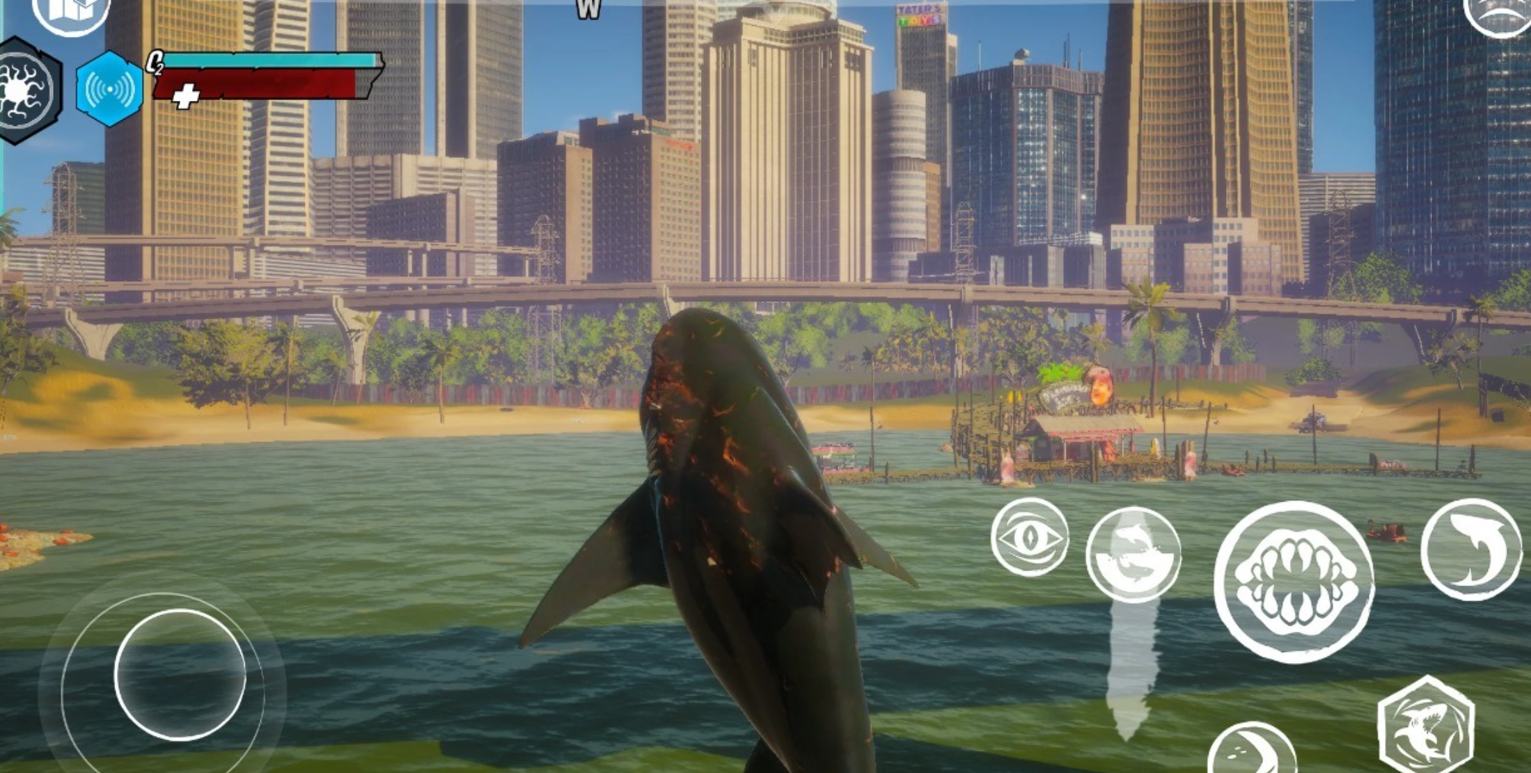 故事线围绕公牛鲨幼崽展开,因母鲨遭猎人捕杀而开启复仇成长之旅。海域生态覆盖完整食物链层级,包含海豚、虎鲸、巨型鱿鱼、潜水作业员及远洋渔船等多样化目标。进化系统划分为骨骼、皮肤、器官、技能四大模块,支持装甲化防御、神经毒素分泌、爆发式加速等差异化发展方向;实战技能如跃空突袭、尾部横扫、召唤同类协同作战,强化战斗节奏感与战术选择空间。