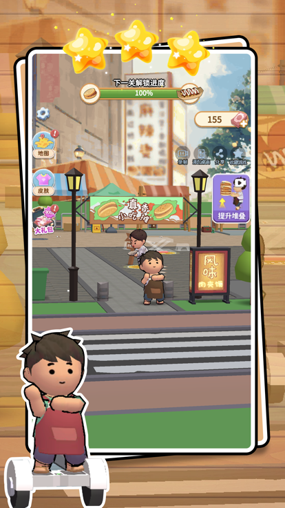 采用俯视角操作界面,还原中式街头小吃制作逻辑。可组合使用豆腐、年糕、肉串、蔬菜、辣椒油等数十种本地化食材,自由研发新菜品。摊位支持分阶段扩建,解锁双灶台、冷藏区、外带包装台等功能区域,显著提升单位时间出餐上限。