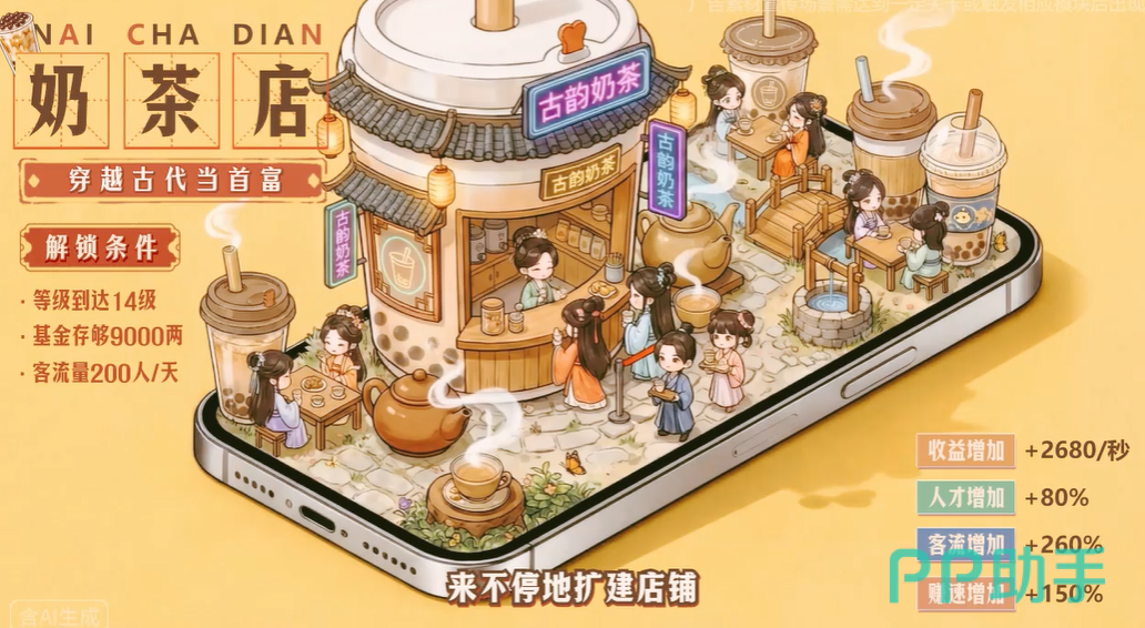 由三期互娱研发的古风模拟经营手游,主打“随时开玩、随时收工”的轻量化设计。游戏舞台设定于盛唐初期,玩家以现代人身份穿越回古代,从一家小铺起步,逐步拓展成综合商业体。支持传统行业如酒肆、布庄等经营,也开放创意玩法,例如自制奶茶、火锅等新式业态。特色系统包括历史人物招募机制,李白可作为员工入职,带来独特剧情与加成效果。