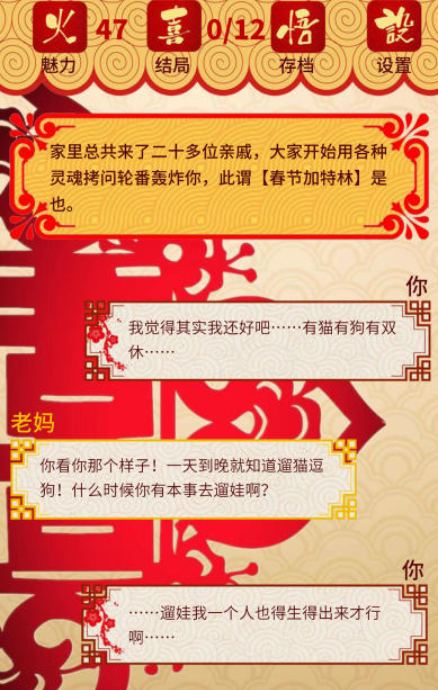 以古代元宵“金吾不禁夜,玉漏莫相催”的开放民俗为背景,打造一款文字驱动型单机恋爱模拟作品。玩家通过选择对话分支推进关系发展,系统实时计算好感度与个人魅力值变化。UI界面模拟即时通讯软件交互逻辑,配色喜庆,字体圆润,配合节令音效,强化“月下邂逅”的仪式氛围。