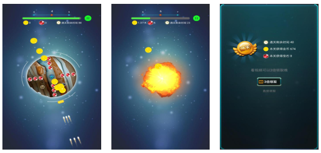 以高速星际航行与精准打击为核心玩法的动作射击类作品。玩家驾驶定制化母舰穿越星域,在遭遇障碍行星前可调出结构分析图谱,识别地核不稳定区、磁场薄弱带及能量节点分布,选择对应弹药类型实施定向爆破。关卡节奏紧凑,毁伤反馈强烈,支持多阶段连击判定与全星体解构回放。