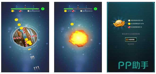 主打解压体验与碎片化娱乐的物理破坏向手游。玩家使用能量炮、引力弹、相位切割器等多种载具武器,精准打击目标行星的地壳薄弱点,触发连锁崩解反应。每颗星球具备独立材质构成与应力模型,爆炸过程呈现粒子飞散、重力坍缩与残骸抛射等细节效果,适配高性能设备的高清渲染表现。