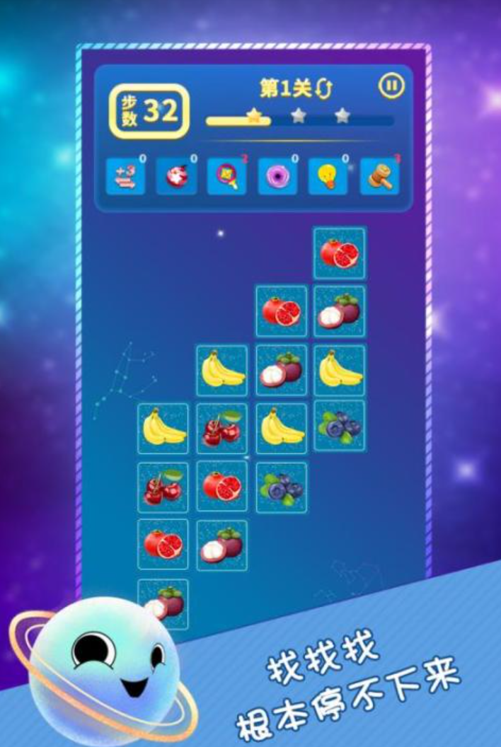 采用翻牌式记忆挑战机制,所有图案初始呈背面朝上状态。玩家需通过有限次数的翻开操作识别图标,并精准匹配两个完全一致的星球符号,再以连线方式完成消除。随着关卡递进,阵列复杂度与图形相似度同步提升,对短期记忆与空间定位能力提出更高要求。
