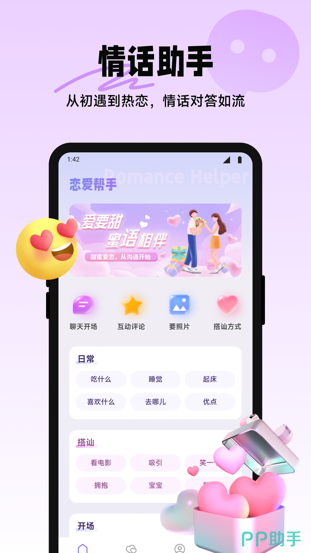 遇到喜欢的人就嘴笨、一开口就翻车?哄不好对象、聊天总冷场也别慌!这款恋爱话术神器直接救大命,海量话术随便搜,土味情话、约会话题、哄人妙招全覆盖,不同场景一键套用,再也不用尴尬抠脚,轻松变身聊天高手,感情一路升温超顺畅。