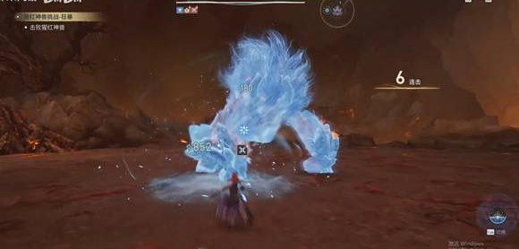 站位不需要太远,Boss在登场的一瞬间就应该切回王昭君就可以直接白嫖龙卷风。进入常规的输出循环中,记住一套固定的连招。王昭君123技能按顺序放,先用一技能消耗,然后用二技能冻住控场,再衔接三技能打满伤害。冻住Boss之后,马上切换到伽罗,打开三技能远程爆发输出,全程不要贪。猩红神兽普通攻击范围比较大,看到抬手的动作,就应该闪避,保持安全距离输出。战斗中还需要紧盯着BOSS血条下面的白条,这就是阶段转换的关键信号。