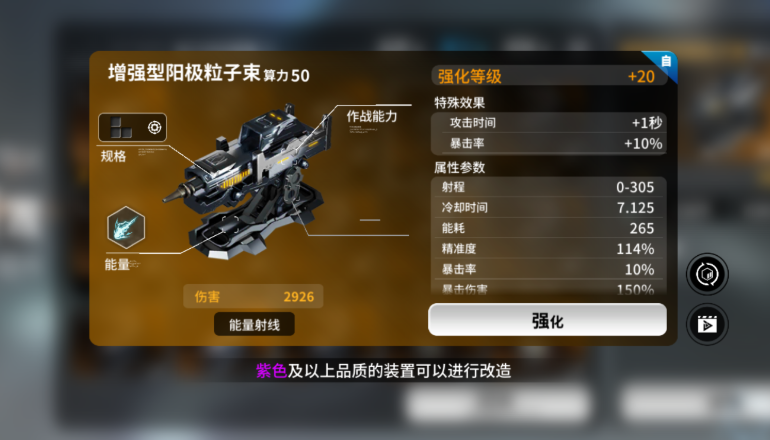 首先推荐的两种武器就是射线类武器中最为出色的,即点射激光和阳极粒子束。点射激光属于一格武器,但是却有着很高的性价比,它不但伤害大、冷却快,而且具有很强的防空能力,是弥补火力不足的补位神器,甚至不需要升到二格就能发挥作用。阳极粒子束就像它的名字一样,给人以朴实无华的稳定感,不花哨,但是可以源源不断地提供稳定的能量伤害,是射线输出流派的基础,适合追求稳定战损比的指挥官。