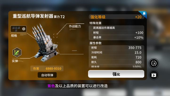 最后要提到的则是导弹类武器中的【巡航导弹】。瞬息万变的太空战斗里,依靠射程上的优势来实施“风筝”战术,这是许多指挥官的最爱。巡航导弹具有超远的射程,可以在敌人的射程之外从容地输出,达到无伤通关的效果。775射程的射弹武器不但是战术灵活的表现,而且是用弱胜强、磨死强敌的最好选择,非常适合喜欢拉扯战术的玩家。