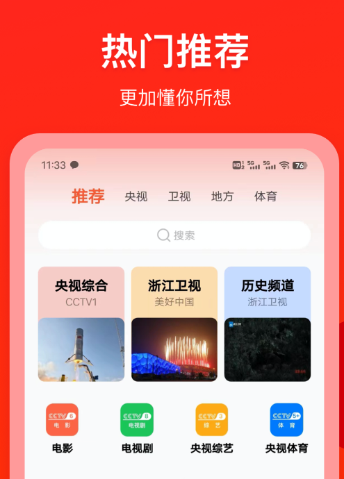 天天电视直播是一款覆盖全面且播放稳定的影视直播应用,它聚合了海量的电视频道资源,无论是央视卫视还是港澳台电视都能轻松找到,满足不同用户的观看需求。软件整体界面简洁清爽,操作逻辑简单易懂,不用复杂设置就能快速切换频道。