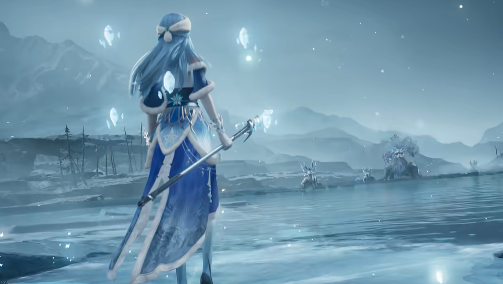此次美术升级不但极大地改善了王昭君的皮肤视觉效果,而且加强了王昭君的内涵表达。人物的体态更加舒展灵动,服饰的纹理、光影的渲染也更上一层楼,天牛角饰被更具有象征意义的小型王冠所取代,代表其身份由部落的使者变为北夷的首领。经过多层设计改良之后,把冰雪意象和宏大氛围相结合,一方面增强了玩家对人物形象的认识,另一方面也使沉浸式的游戏体验得到提高,并且审美水平明显提升。