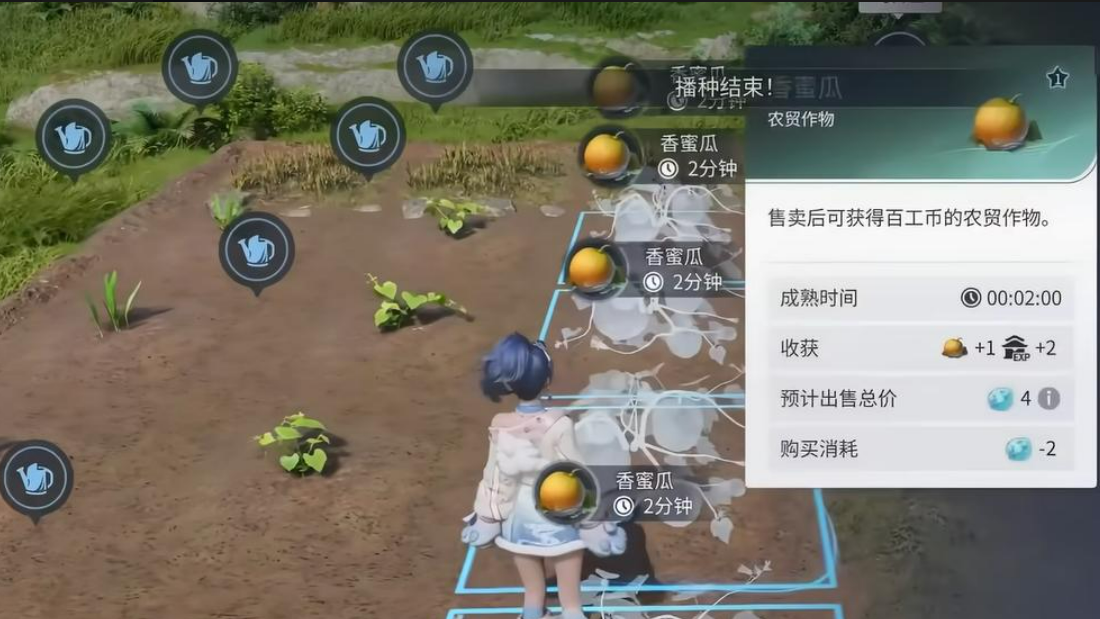 家园解锁之后,市集区域会出现一个固定的常驻商人,这个商人是每天都在的,不会跑。他主要做三件事:收作物、卖家具、回收建材。种出来的果实和作物,可以直接拿去换百工币、建材,还有家具随机盒。不同作物换的东西不一样,像香蜜瓜这类高等级作物,换出来的东西明显更值。不过要注意,每天和每周都有兑换上限,不是想换多少就换多少,所以作物别囤太多,够用就行。