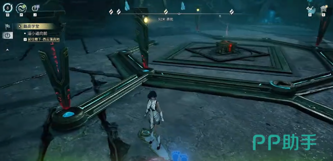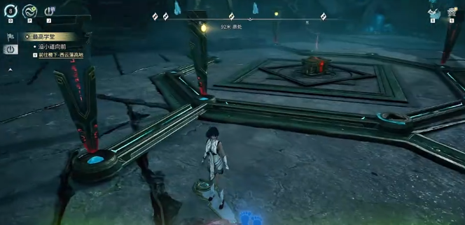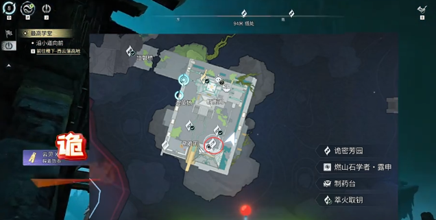 接着沿着楼梯往上走,就可以触发机关解锁成就,拿到顶级武器升级的材料,给后期的武器升级打下基础。那接下来就是去寻找天柱虚秘宝,玩家需要在避难所去获取藏宝图,然后返回之后可以看到多个黄色的光圈。每一个光圈都会对应一枚,收集的效率是比较高的,最终按照指引就能够找到最终的宝藏。在这一个位置继续的往深处走就能够找到诡秘芳园,找到燃山石学者接取样本探索任务,这个时候就需要玩家找到三个样本。
