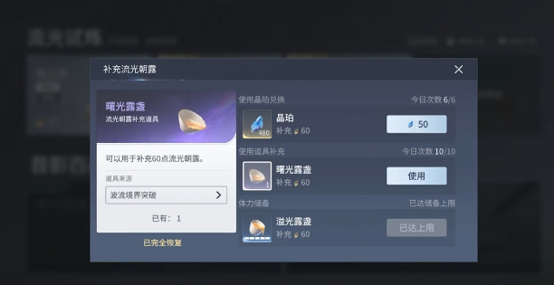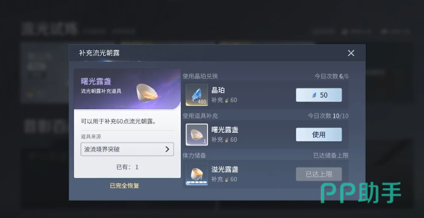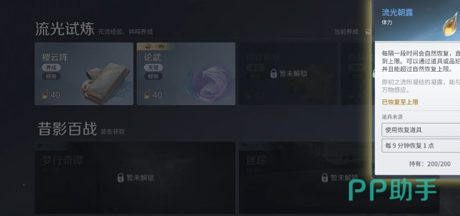 在游戏中每相隔9分钟就会恢复一点体力,每天自然恢复,最大的数值是160点。另外大家还可以使用曙光露盏可额外恢复60点,第一天就算是休闲的游玩,也可以累计获得300点的最高体力。一开始建议大家不要盲目的消耗,一定要按照规划去使用,如此才能够体现性价比。1~20级对于新手来说就是起步的阶段,核心的任务就是跟随着主线剧情去推进。这一个阶段不需要去刻意的囤资源,体力主要是作用于武器突破材料,还有角色升级材料。