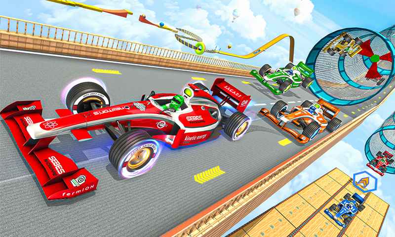 游戏主打高难度动作竞速,赛道中密集分布跳台、环形轨道、旋转门及悬浮平台等结构化障碍。玩家需在保持高速前提下精准控制腾空时机、翻滚轴向与落地角度,完成连续空翻、侧旋漂移、倒挂滑行等复合动作。关卡设计强调节奏感与操作容错率,配合动态摄像机运镜,强化视觉冲击力与沉浸式挑战反馈。