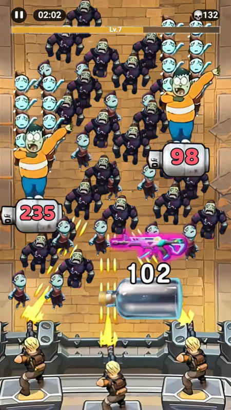 高度还原“向僵尸开炮”的快节奏枪械防御体验。玩家指挥多名机枪手组成交叉火力网,小怪具备高速突袭特性,BOSS单位则拥有超高护甲与阶段化技能循环。通过连续击杀积累连击点数,可解锁穿甲弹、燃烧弹、电磁脉冲弹等差异化弹药类型,并提升单发伤害与附加效果强度。