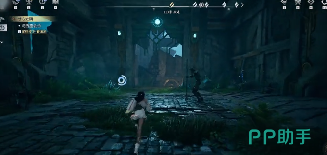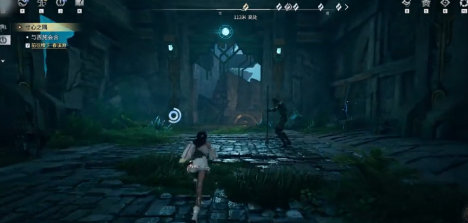 玩家先来到任务的起始点。先与神工艺对话接取溯闻英雄所归任务,接取任务之后,把视觉角度朝着右边转一下,沿着指引的方向前进。可以直接跳到右侧的平台,然后激活素文固影。开启之后继续往前走,把左手边的小怪清理掉,上前调查点位,并且拾取钥匙。不需要纠缠沿途的小怪,一路向上奔跑即可。找到升降机并且启动,然后激活前面的机关推进任务的流程。