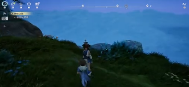 这个解密任务的触发时机非常明确,当你完成主线任务归陵异动,系统就会自动的接取新的任务,而这个新的任务就是神纹之谜,任务目标是前往秘禁阁。玩家打开大地图规划路线时就会经过以下区域,这里正好就是考核任务。玩家顺路的完成,根本就不需要专门的折返。在抵达指定位置之后开启考核任务,剧情推进之后就会出现核心的挑战。三个人需要共同的踩下机关才能通过前方的路段,前面两个机关是自动踩住的。只有第三个关键机关是被一块坚实的石头所盖住,没有办法直接踩踏。