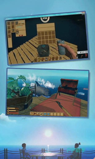 以第一人称3D视角呈现浩瀚海洋环境,木筏为唯一移动基地。玩家通过长钩打捞漂浮物——塑料桶、轮胎、木板乃至废弃集装箱,持续扩展筏体结构并升级功能模块。当鲨鱼发起高速撞击时,需快速切换近战武器或投掷物进行防御,物理反馈与音效设计增强临场压迫感。