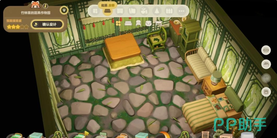 首要原则是功能分区清晰化。建议将可建造区域划分为四大基础模块:种植作业区、起居生活区、休憩放松区及氛围装饰区。其中,起居生活区以床、衣柜、餐桌等高频使用家具为核心,宜靠近房屋主入口或中心动线,提升每日交互效率;种植作业区则集中布置菜圃、花盆、堆肥桶等农耕相关设施,便于集中浇水、除虫与收获,减少重复往返;
