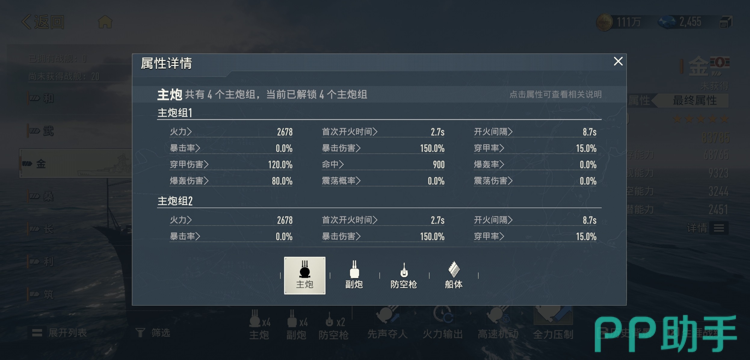 火力配置方面,金搭载四座主炮、四座副炮及两座防空机枪。主炮口径优势明显,支持齐射模式,单轮伤害可观;副炮射速快、转向灵活,擅长应对轻型目标与快速清场;双防空机枪覆盖范围合理,可稳定拦截中低空威胁。实战机制上具备多项联动增益:开局前两轮主炮连续发射,并触发火力强化效果;布阵于后排时,主炮命中率获得额外加成;副炮命中触发穿甲效果时,有概率提升主炮穿甲率;主炮成功穿甲则进一步提升自身主炮火力并缩短开火间隔;此外,每当敌方任一单位被击毁,金的主炮将立即完成充能并进入下一次射击状态。