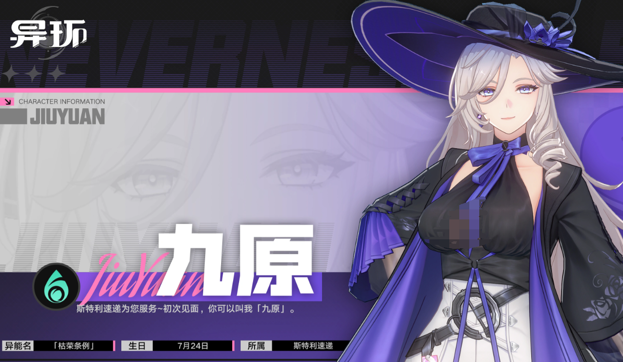 九原定位为高爆发灵属性远程输出角色。普攻为双枪五段连击,命中过程中自动积攒“玫约子弹”,第五段命中后与目标缔结“玫约”。滞空状态下点击普攻,将在落地时触发下落攻击,造成灵属性伤害,且伤害值随下落高度线性增长;长按普攻则进入锁定射击模式,优先消耗子弹对已缔结契约的目标进行连续点射。“情报猎手”技能可位移突进至敌方位置,造成多段相属性异能伤害,并强制将目标拉入可控区域,成功命中后额外生成4颗子弹并追加契约效果。“终局清账”为大范围高速机动技,期间持续进行扫射,终结时引发大范围灵属性爆炸,并使所有已缔结契约的敌人进入“伤害清算”状态,承受额外结算伤害。