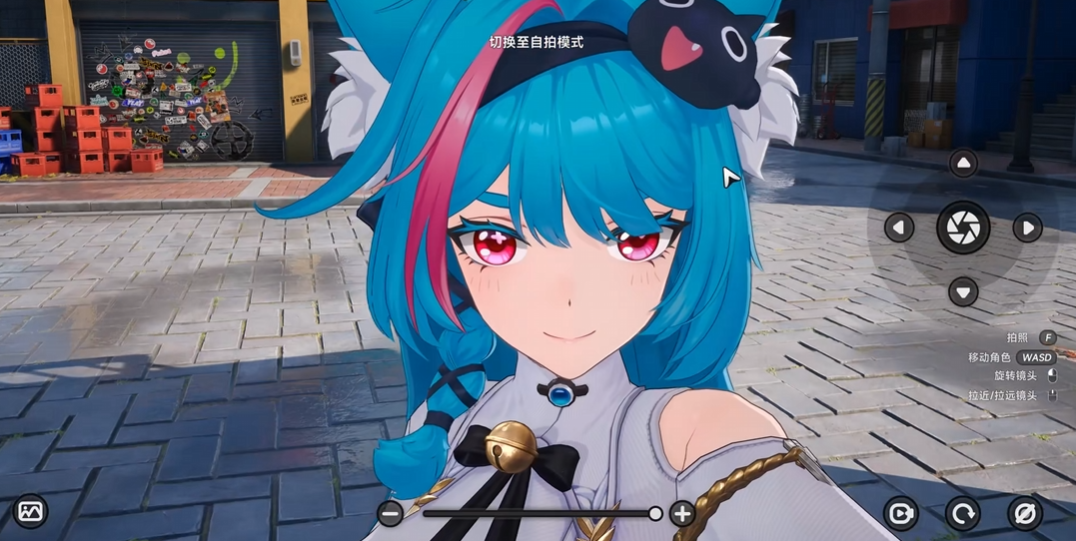 自拍功能默认部署于游戏界面右下角,图标为标准相机图形。点击后即刻进入专属摄影模式,此时视角自动脱离常规移动视角,切换为全自由构图状态,镜头可独立于角色运动进行三维空间调节。