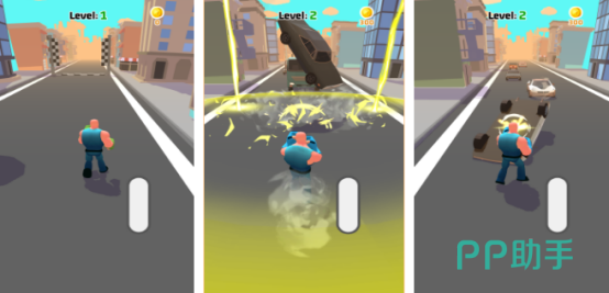 融合跑酷、动作格斗与物理交互机制的创新玩法。主角为肌肉线条鲜明的硬核猛男,在动态生成的危机路段高速奔跑,实时闪避迎面冲来的汽车等障碍物;操作上支持左右滑动控制位移,并可通过点击或长按触发强力拳击,将逼近的载具直接击飞,节奏紧凑、打击感强烈。