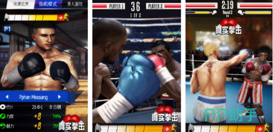 基于Unreal Engine 3D引擎打造,呈现拟真拳台环境与高精度角色动画。开局即进入标准职业拳击擂台,双人对抗张力十足。操作设计极简:滑动屏幕即可完成直拳、勾拳、上勾等基础出招,连招系统支持组合技释放。含职业生涯、训练营、快速对战等多种模式,且为官方授权正版IP产品。