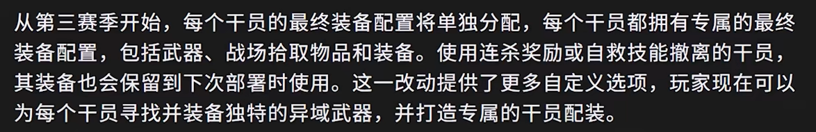 更新后启用“干员-武器绑定”机制,玩家可收集异域武器并配置至对应干员专属装备栏,形成个性化作战组合。